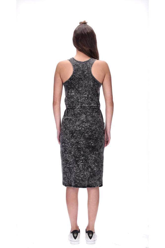 Features: Drawstring waist with a shaped hemline, side splits and front pockets