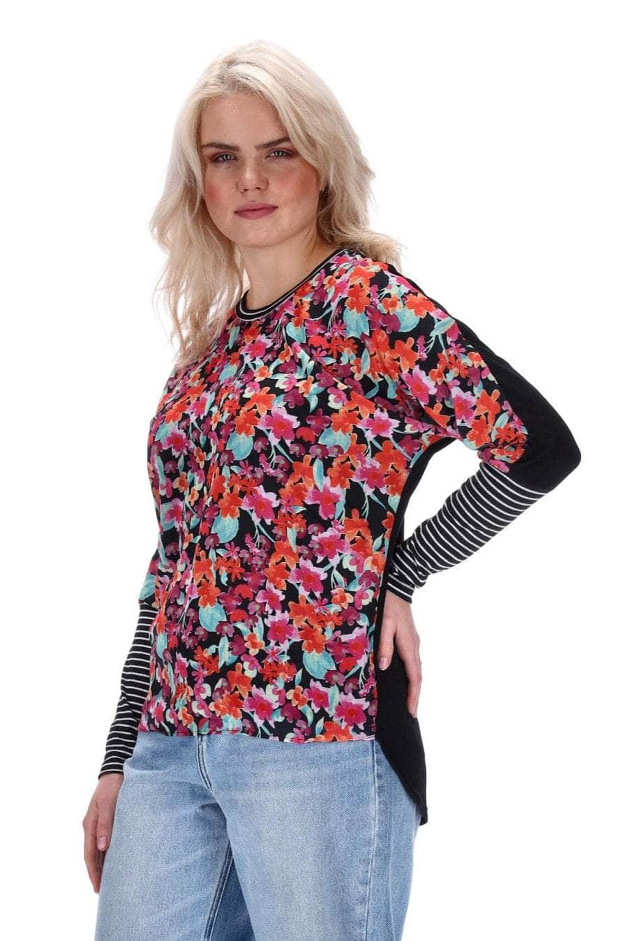 A black based floral print top.