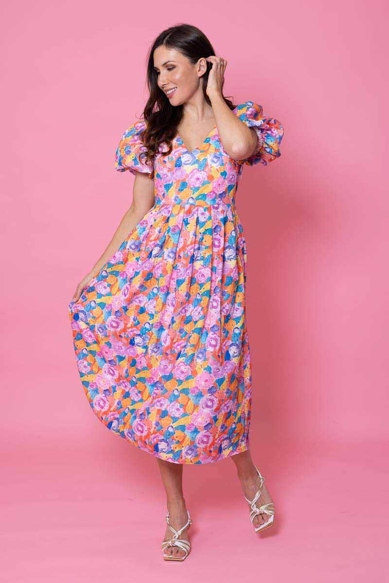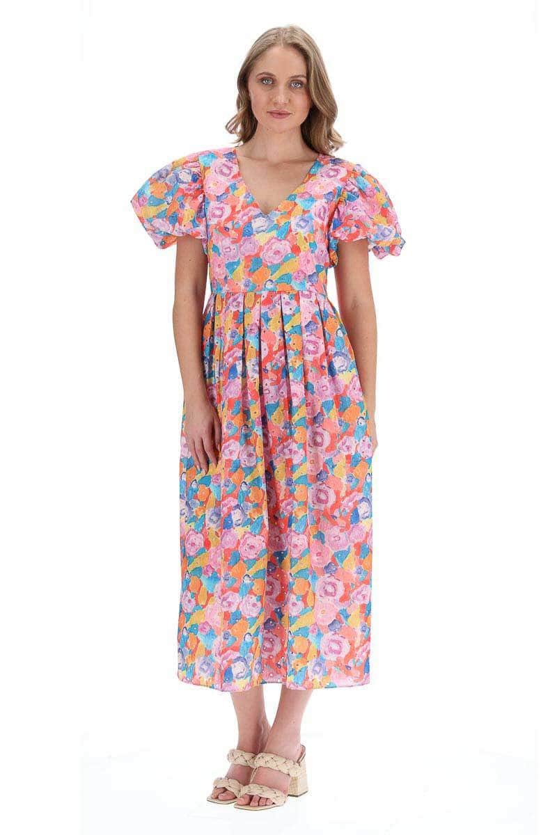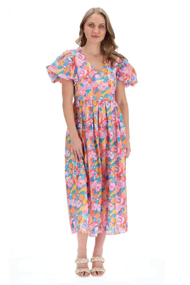- Pink/Blue/Yellow/Orange floral print with eyelet embroiderey